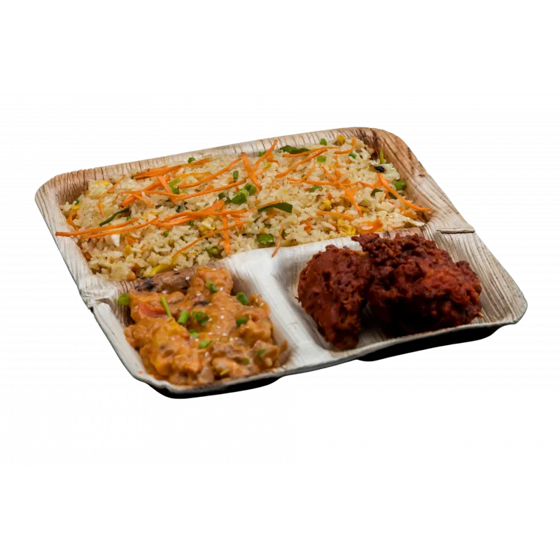 The Areca Palm Leaf 10 Inch Partition Plate is crafted from naturally fallen, handpicked palm leaves, offering an eco-friendly and sustainable alternative to plastic or paper plates. Designed with partitions, it is ideal for portion-controlled meals while keeping different food items neatly separated. Its natural texture adds a fresh, rustic elegance to any tablescape, making it suitable for both casual and formal dining.