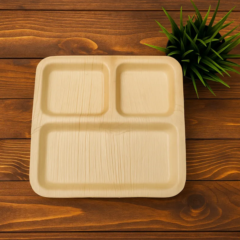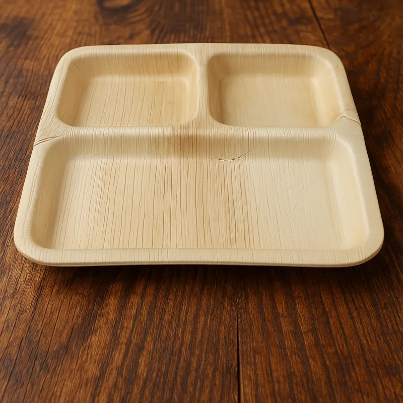 Eco-friendly 10-inch Areca Palm Leaf Partition Plate, biodegradable, leak-proof, microwave/oven safe, ideal for portion meals, takeout, catering, and sustainable dining.