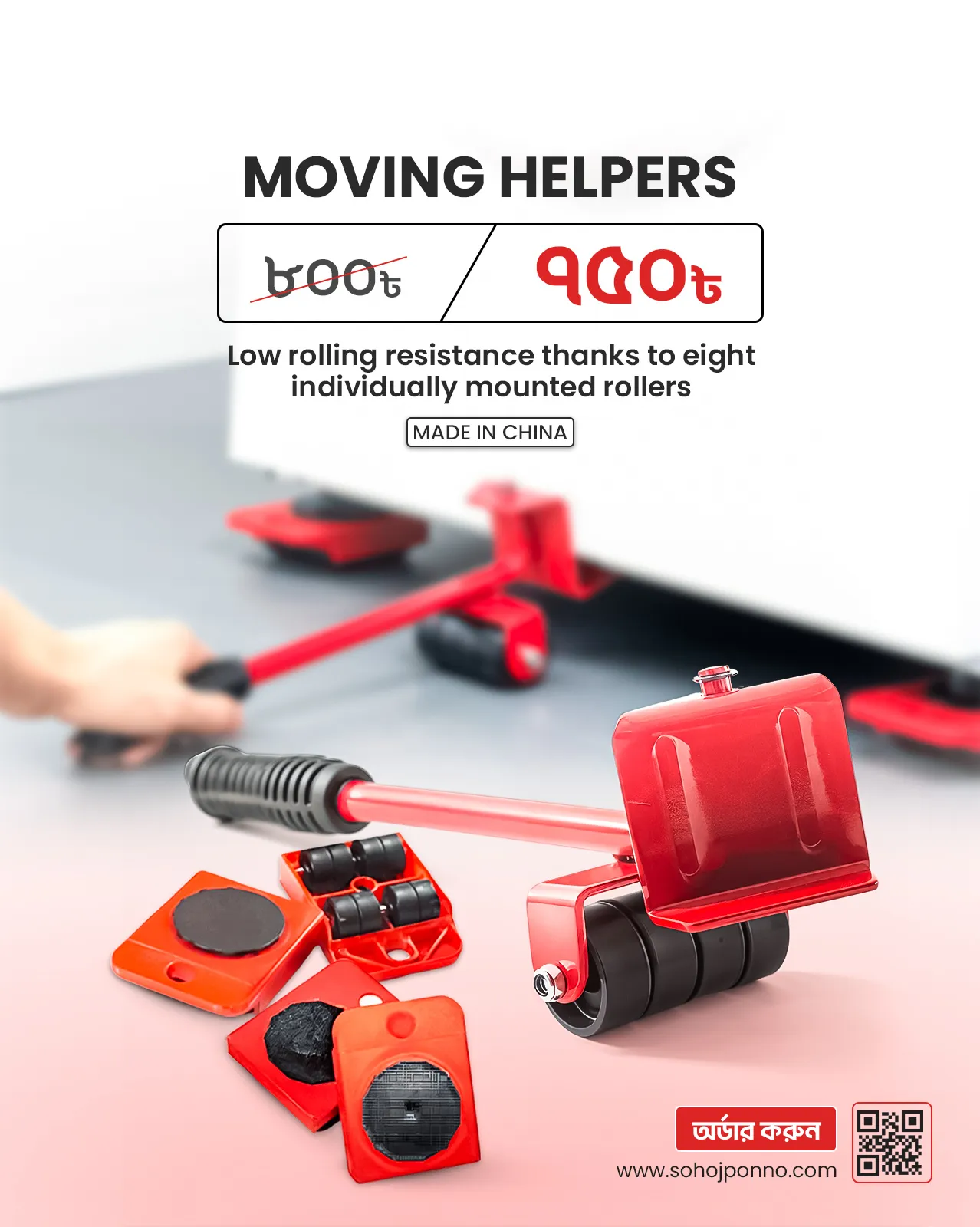 স্মার্ট আসবাবপত্র ও ভারী সামগ্রী স্থানান্তর এখন একদম সহজ! Moving helpers দিয়ে আপনার ঘর বা অফিসের আসবাবপত্র সরানোর জন্য আদর্শ। শক্তিশালী ইস্পাত দিয়ে তৈরি প্রাই বার এবং চারটি ৩৬০° গতি সম্পন্ন রোলার সেট সহ, আপনি সহজেই সোফা, ফ্রিজ, বিছানা, পিয়ানো সহ যে কোনো ভারী জিনিস সরাতে পারবেন। বাড়িতে পরিষ্কার, পুনর্বিন্যাস বা পুনরায় সাজানোর সময়ে আর পিঠে চাপ বা বন্ধুদের সাহায্যের প্রয়োজন নেই!