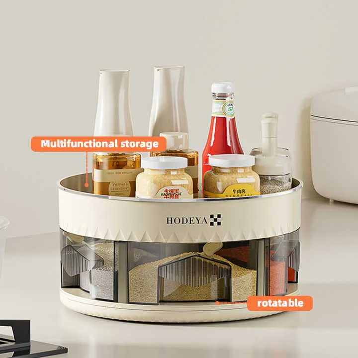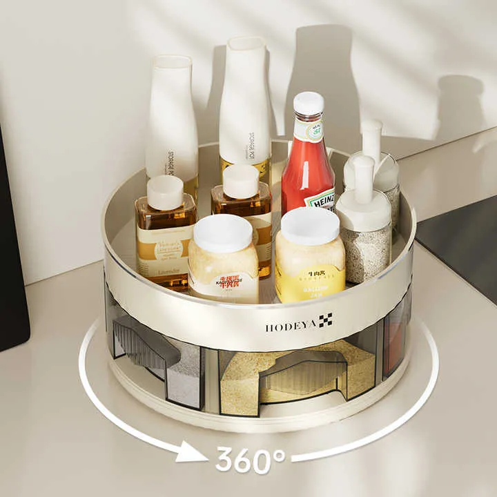 Kitchen 360° Rotating Spice Organizer – রান্নাঘরে মশলার জারগুলো গুছিয়ে রাখার জন্য আধুনিক ও স্টাইলিশ ঘূর্ণনযোগ্য অর্গানাইজার।