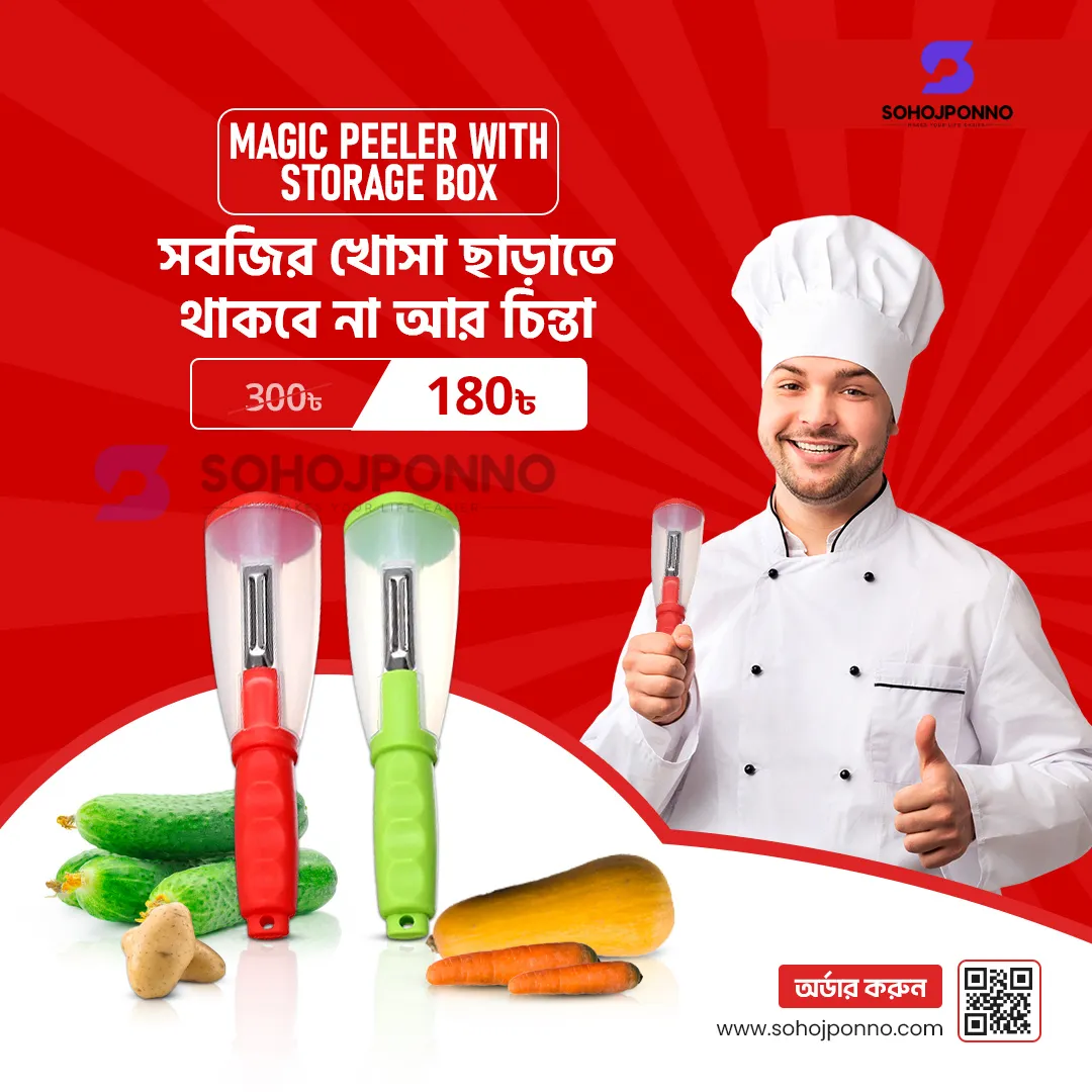 SOHOJPONNO নিয়ে এসেছে Magic Peeler with Storage Box – আপনার রান্নাঘরের জন্য একদম পারফেক্ট একটি কিচেন টুল।