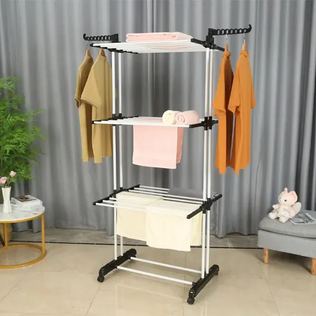 With six shelves that can be customized for different items (from large towels to delicate garments), plus designated hanger slots for shirts or specialty drying, this rack maximizes every inch of space. The lower bar structure doubles as an ideal shoe drying area. Best of all, its portable design with lockable wheels means you can seamlessly move it wherever you need it most.