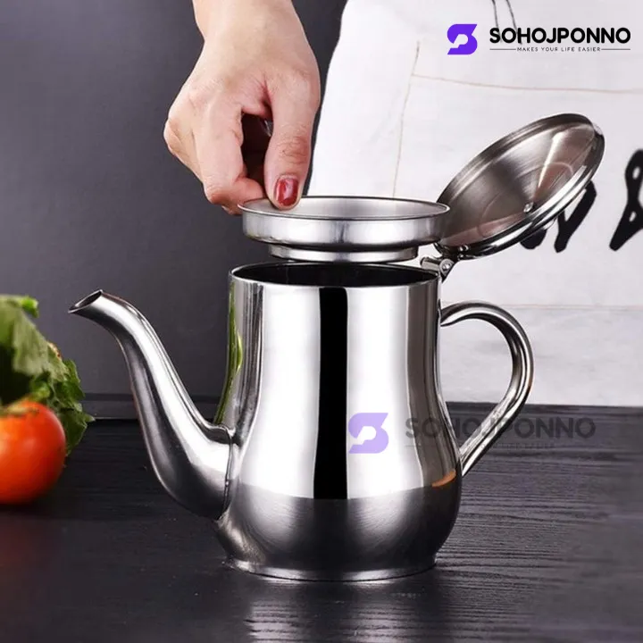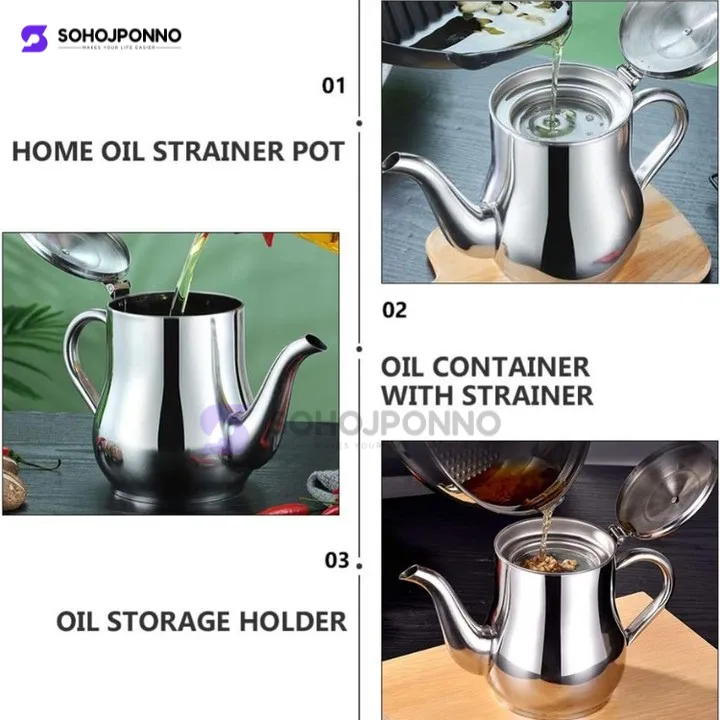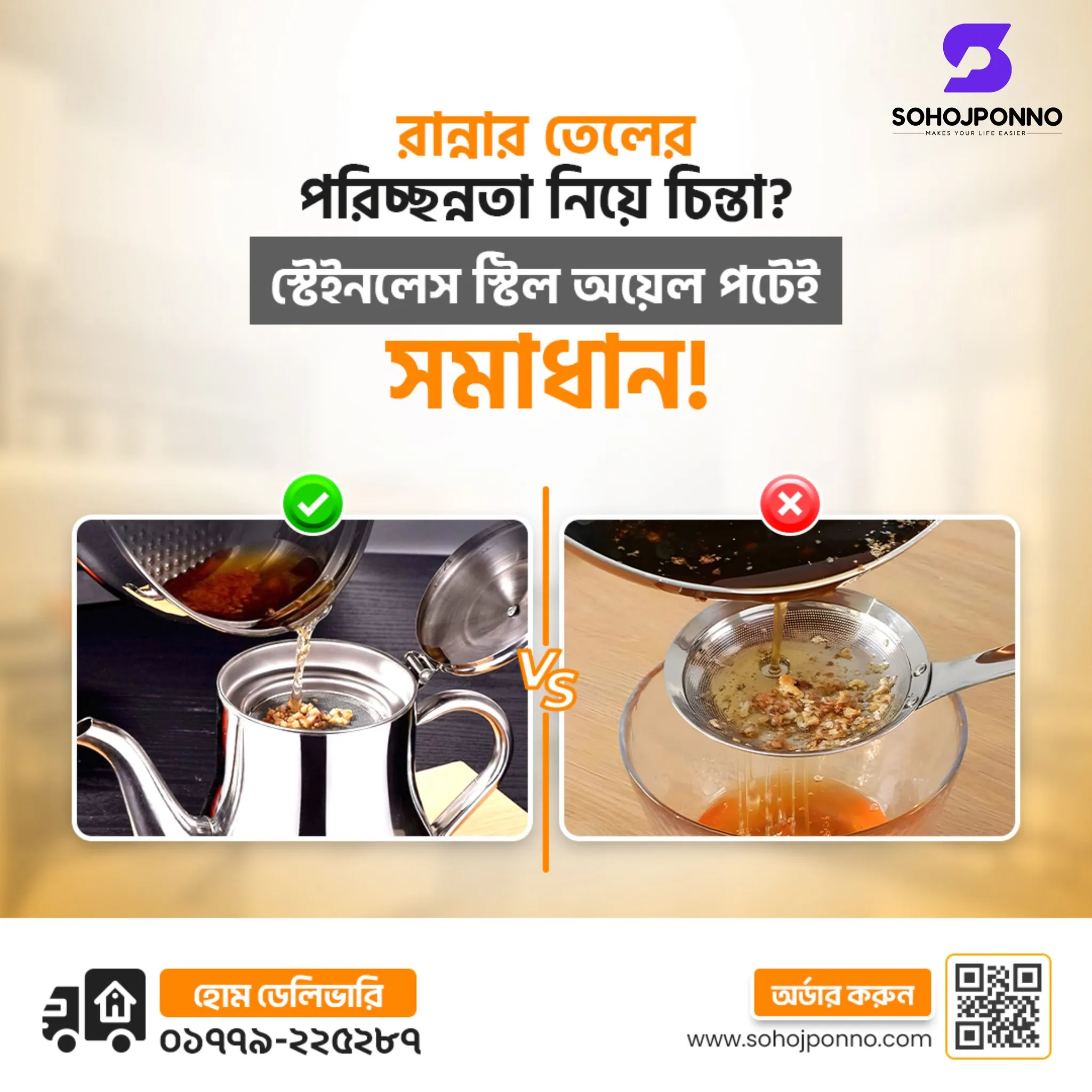 🍳 রান্নাঘরে এটা আপনার সেরা সহায়ক হবে। তেল রাখতে পারবেন, আর ফিল্টার দিয়ে তেল ছাঁকাও যাবে। ব্যবহার করা খুবই সহজ!