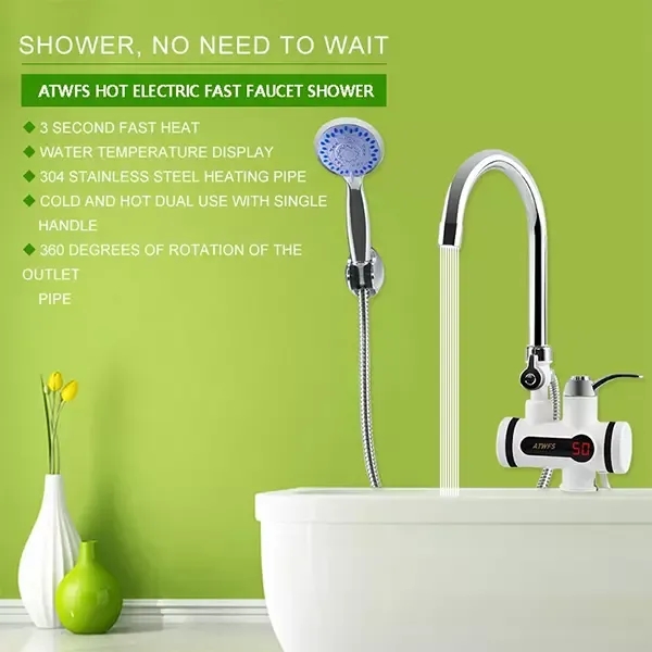 The Temperature Display Instant Hot Water Tap With Shower Head guarantees that you get piping hot water in just 3 seconds, revolutionizing your daily routines. Whether you’re washing dishes in the kitchen or rinsing off in the shower, this tap brings convenience and efficiency to any space.