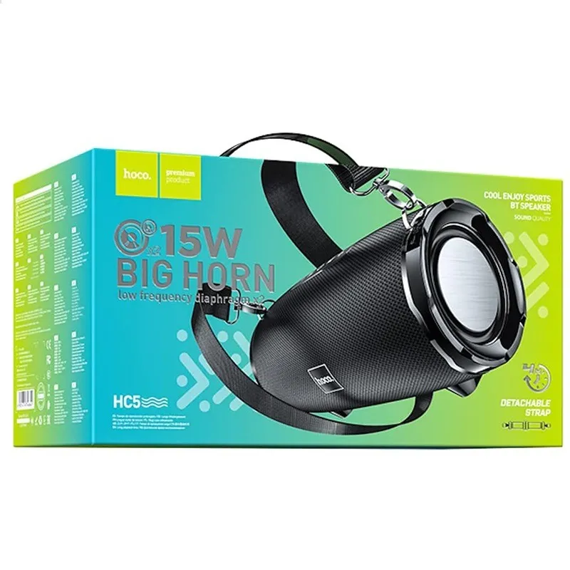 The HOCO HC5 Bluetooth Sports Speaker delivers powerful 15W stereo sound with dual-diaphragm bass, providing clear and immersive audio for music, calls, and entertainment. Featuring Bluetooth 5.0, it ensures a fast, stable wireless connection with compatible devices.